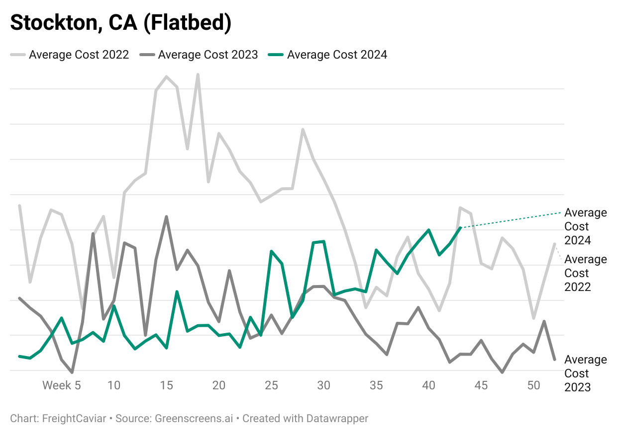 This progression indicates not just a seasonal spike, but a stronger foundation for rates, potentially providing stability for carriers and brokers operating out of the Stockton market.