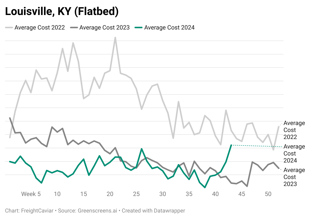 Disaster Response Impact: Hurricanes, bridge collapses, and even routine cleanup have been adding layers of logistical needs in Louisville. These events increase demand and drive up rates as resources shift to meet urgent requirements.