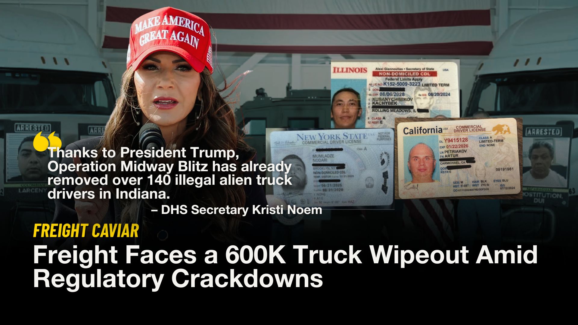 According to Noem, many of the arrested drivers held commercial licenses from states like Illinois, California, and New York, underscoring what she called “sanctuary licensing failures.”