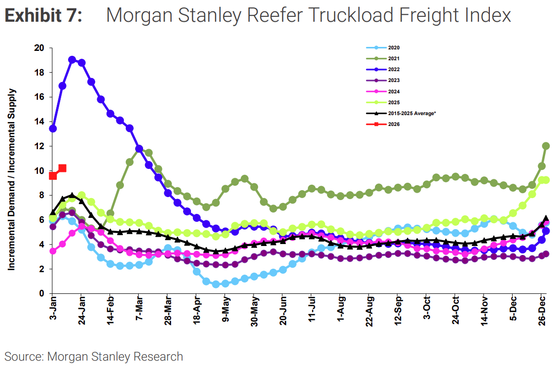 Morgan Stanley data shows reefer demand started 2026 at its strongest level since 2021.