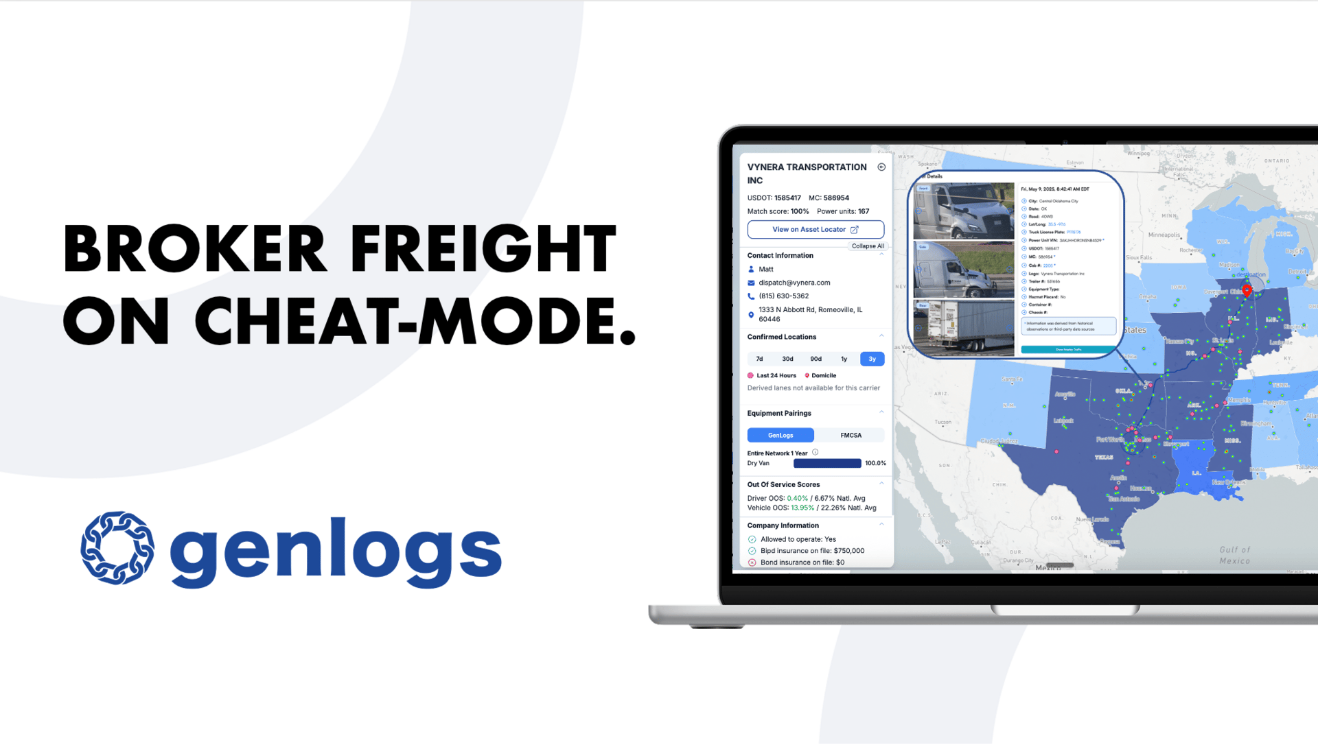 Every carrier. Every equipment type. Every lane. GenLogs delivers whole-of-market capacity with its Truck Intelligence platform.