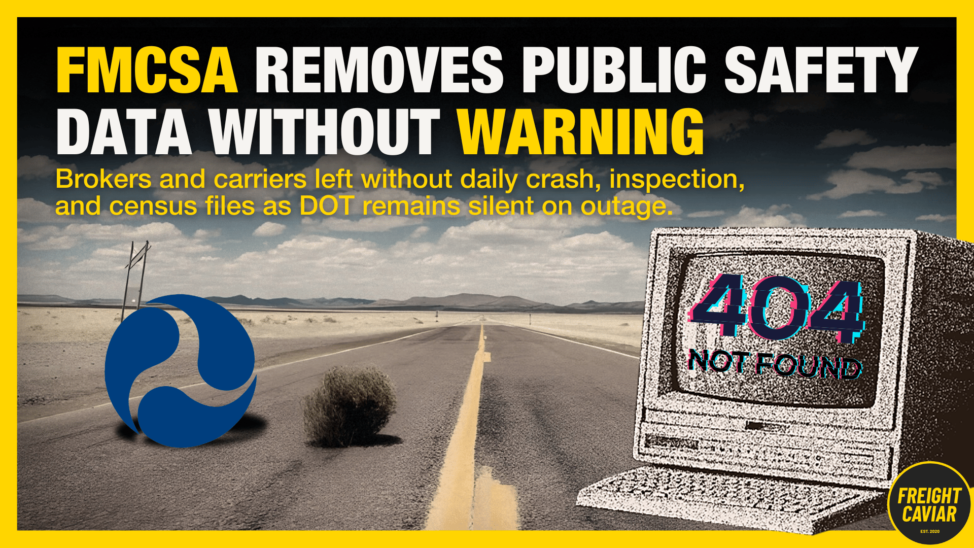 Good Wednesday morning. FMCSA data feeds vanish overnight, leaving industry blind on safety checks and fraud prevention as DOT stays silent. Today's feature outlines what we know so far.