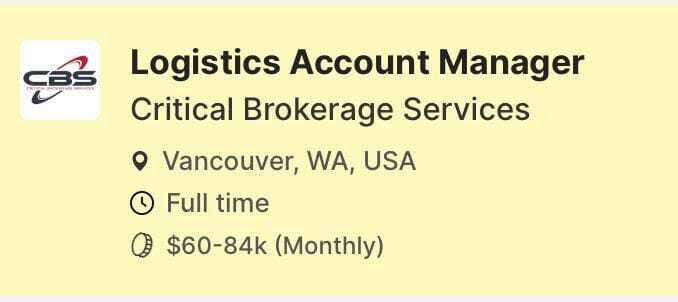 🚨 Account Manager Wanted. Join a fast-paced team moving time-sensitive freight for North America’s biggest shippers. This isn’t a backseat gig; you’ll work side by side with top operators, managing high-pressure accounts where speed and precision matter. If you thrive under pressure, communicate clearly, and take ownership of results, Critical Brokerage Services wants to hear from you.