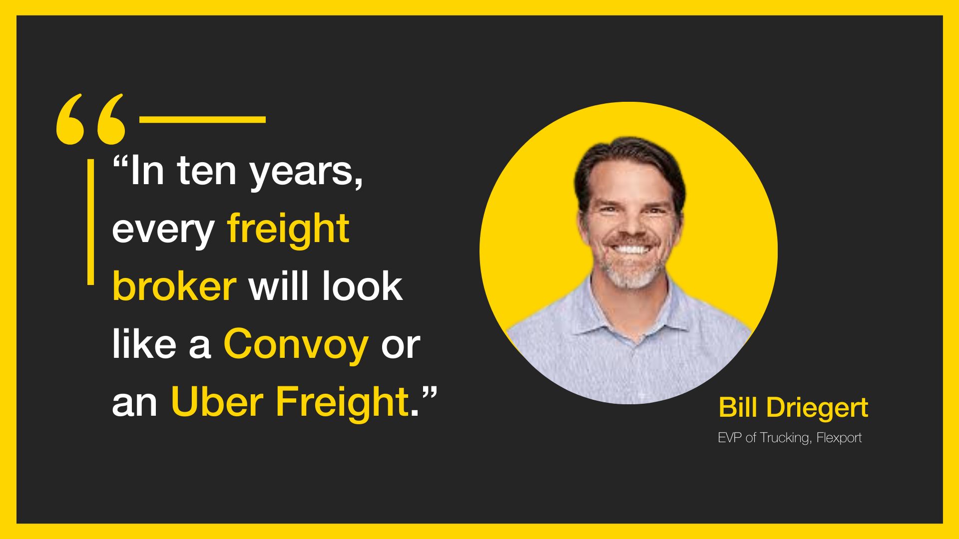 Bill Driegert: Tech Is Forcing Brokers to EvolveFlexportâs Bill Driegert shared insights on how automation and AI are reshaping freight brokerage. He predicted the industryâs future:
