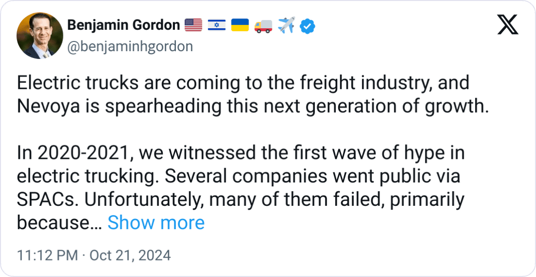 Good Morning. Today's feature takes a close look at electric truck startup Nevoya and how they're reigniting investor confidence in battery electric vehicle (BEV) companies.