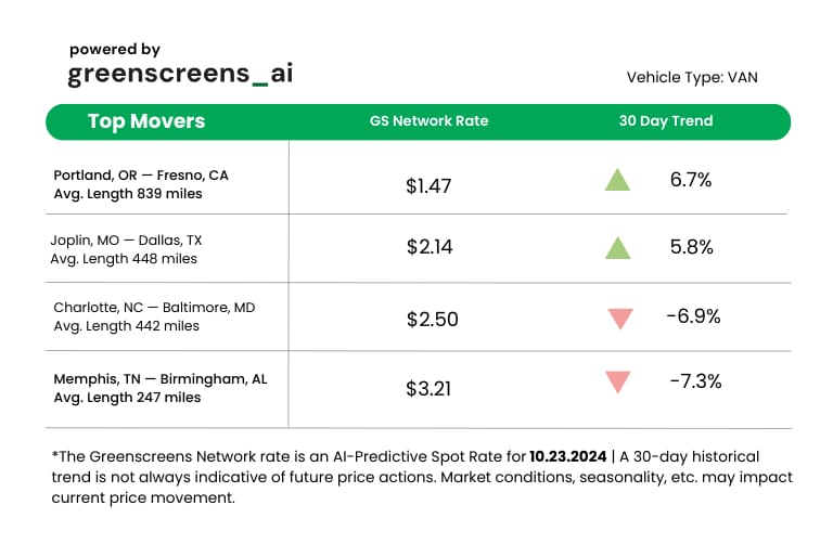 *Greenscreens.ai, forecasts real-time truckload buy prices that are suited to each freight brokerage's purchasing power using AI and machine learning. Its engine takes into account over 130 attributes and data points in each rate forecast.