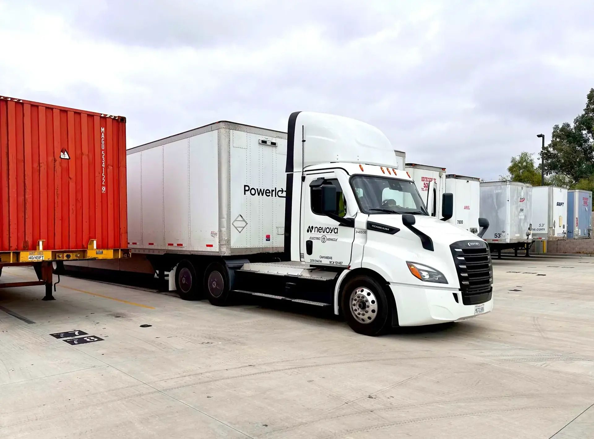 Nevoya's Freightliner eCascadia – the electric truck of choice for their fleet.Image Source: TechCrunch/Nevoya