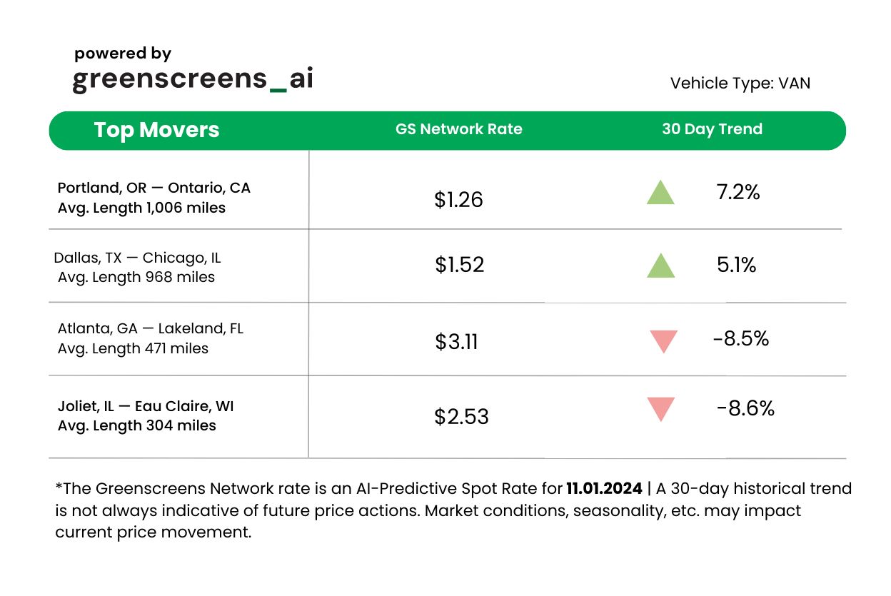*Greenscreens.ai, forecasts real-time truckload buy prices that are suited to each freight brokerage's purchasing power using AI and machine learning. Its engine takes into account over 130 attributes and data points in each rate forecast.