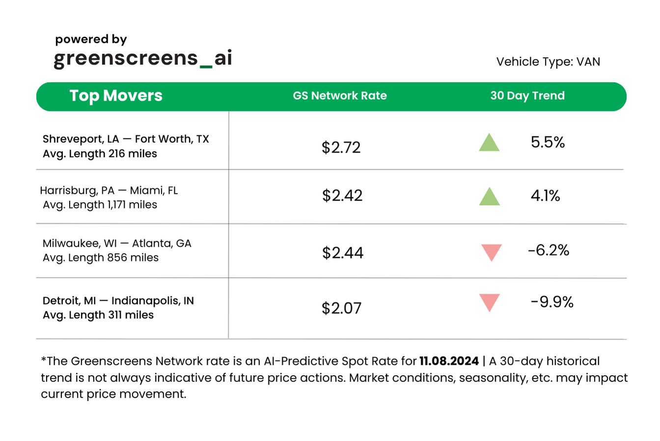 *Greenscreens.ai, forecasts real-time truckload buy prices that are suited to each freight brokerage's purchasing power using AI and machine learning. Its engine takes into account over 130 attributes and data points in each rate forecast.