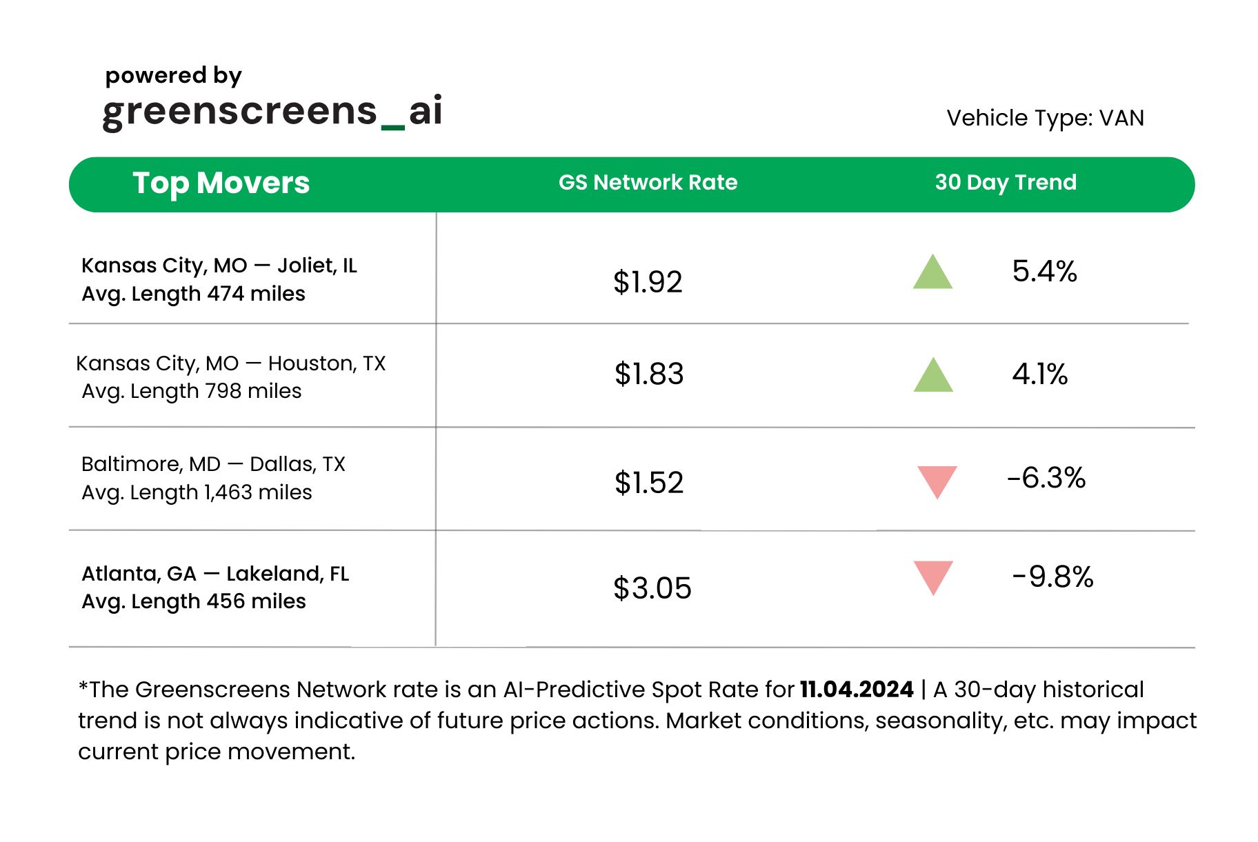 *Greenscreens.ai, forecasts real-time truckload buy prices that are suited to each freight brokerage's purchasing power using AI and machine learning. Its engine takes into account over 130 attributes and data points in each rate forecast.
