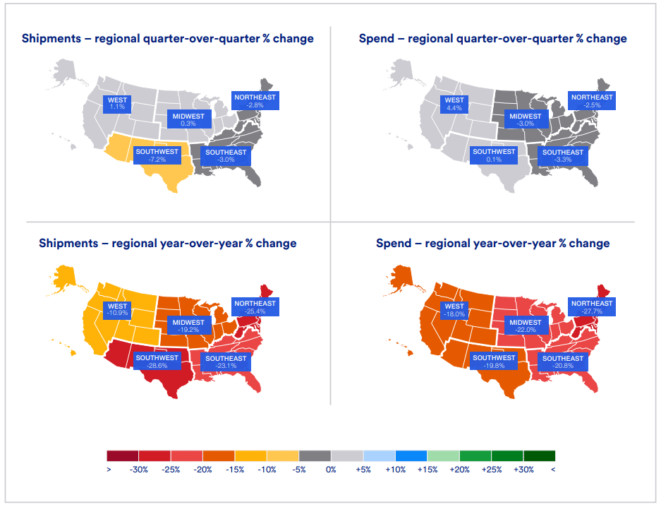 Shipments: The index rating for shipments dropped 1.9% compared to Q2, marking the ninth straight quarter of declines.