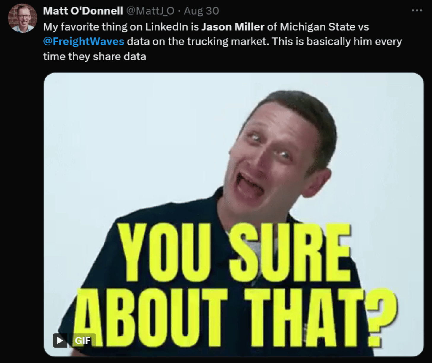 The trucking and freight industry often has differing opinions on market trends, but few compare to the debate between FreightWaves CEO Craig Fuller and Michigan State supply chain professor Jason Miller.