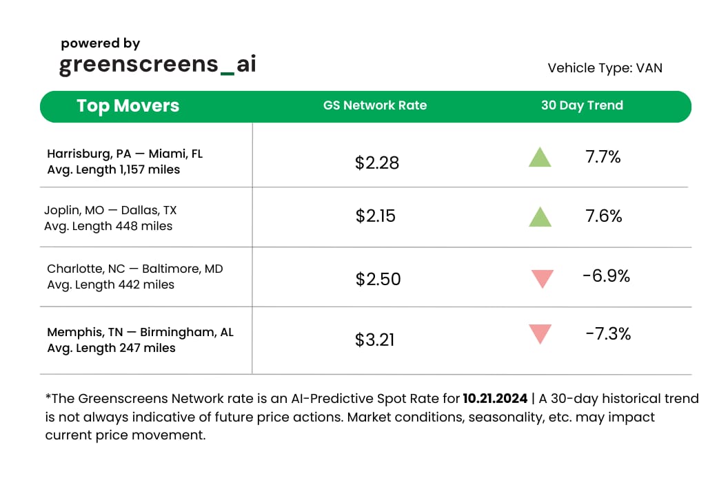*Greenscreens.ai, forecasts real-time truckload buy prices that are suited to each freight brokerage's purchasing power using AI and machine learning. Its engine takes into account over 130 attributes and data points in each rate forecast.