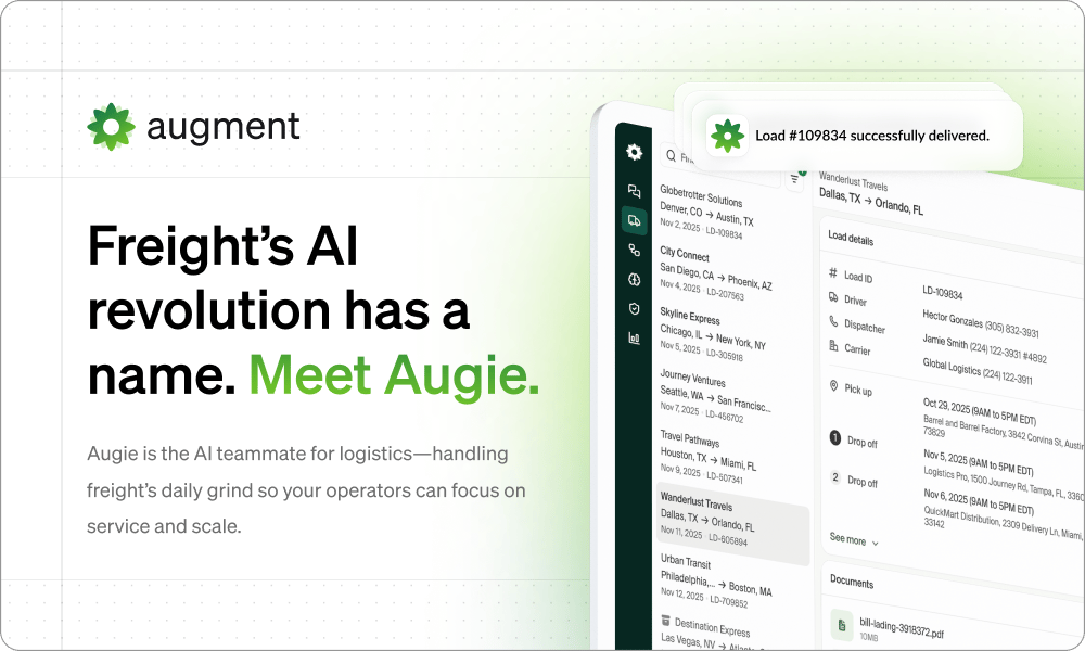 Built for logistics by Augment, Augie helps ambitious brokerages move faster, scale smarter, and become harder to catch.