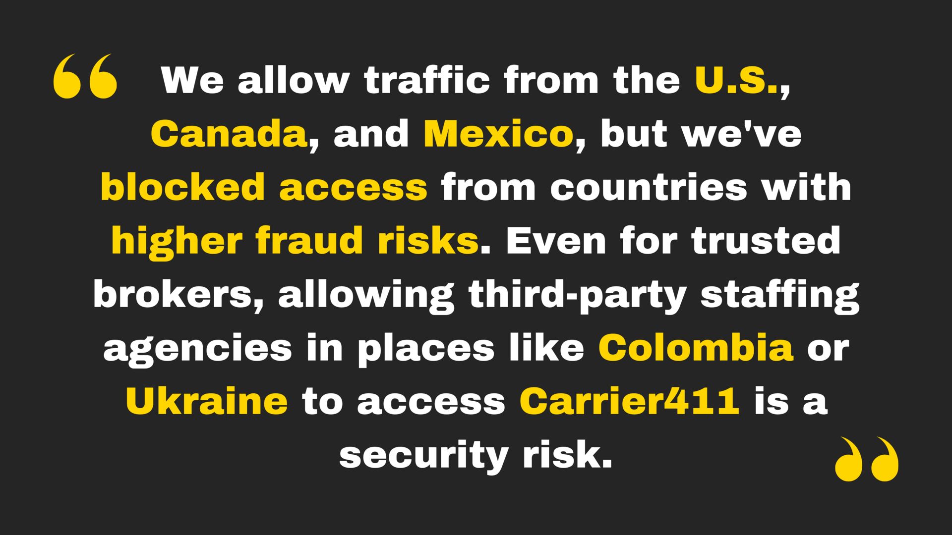 Carrier411 also places limits on brokers using third-party teams in certain regions known for high fraud.
