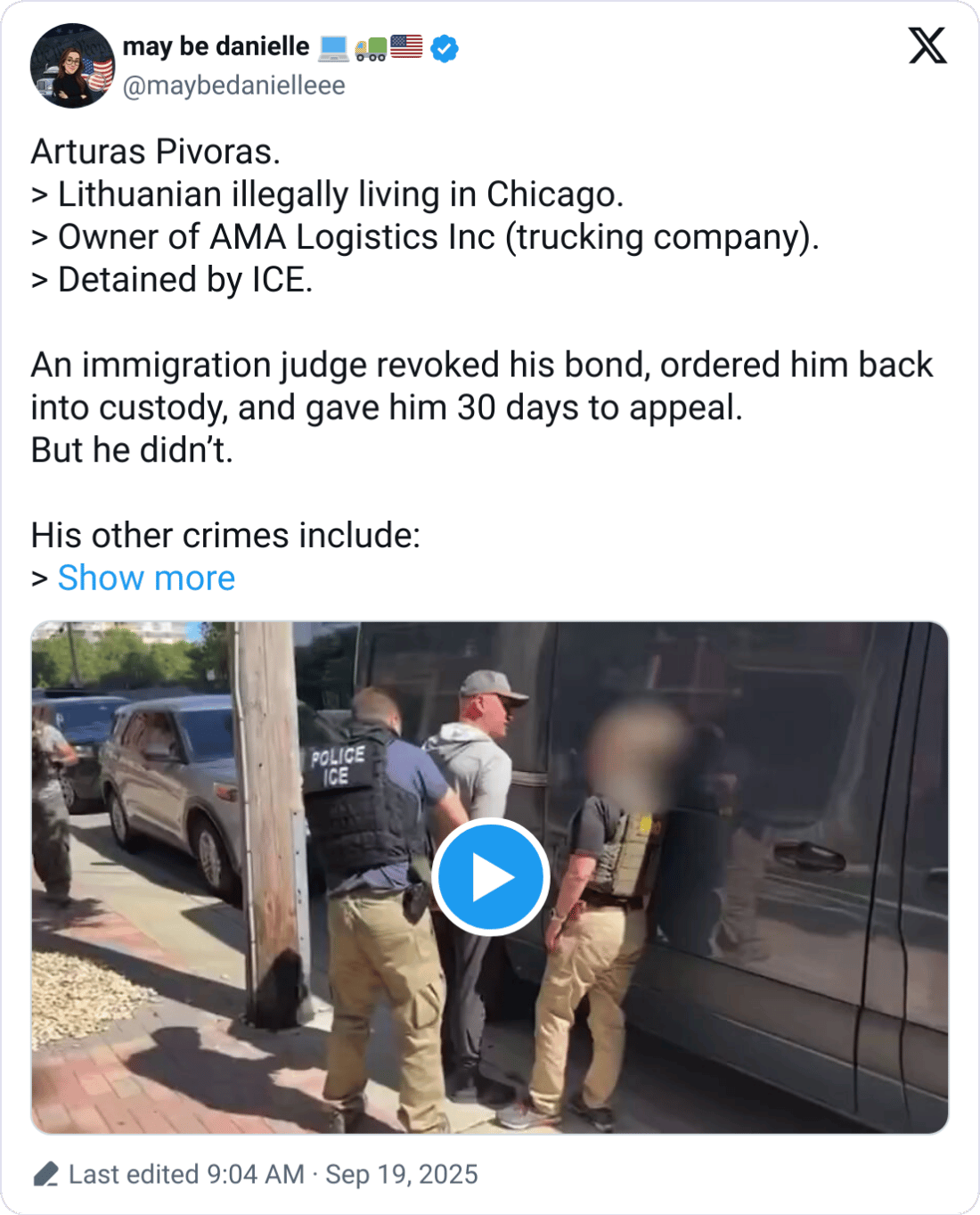 Danielle Chaffin highlighted the case of Arturas Pivoras, a Lithuanian national in Chicago linked to AMA Logistics Inc., a company that is 15 years old and has 18 trucks under its belt. Detained by ICE, Pivoras has a history of criminal activity, including copper wire theft and aggravated assault on a police officer. His company also received a PPP load of $450K, according to Chaffin's research.