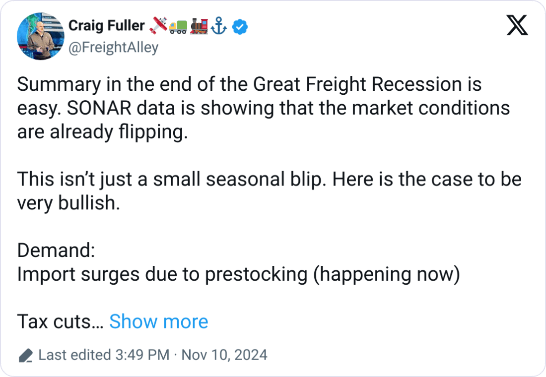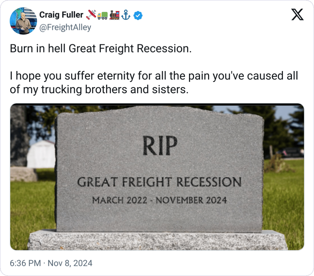Good morning, and Happy Veterans Day! šŗšø Today, weāre diving into Craig Fullerās bold call: āThe Great Freight Recession is Over."