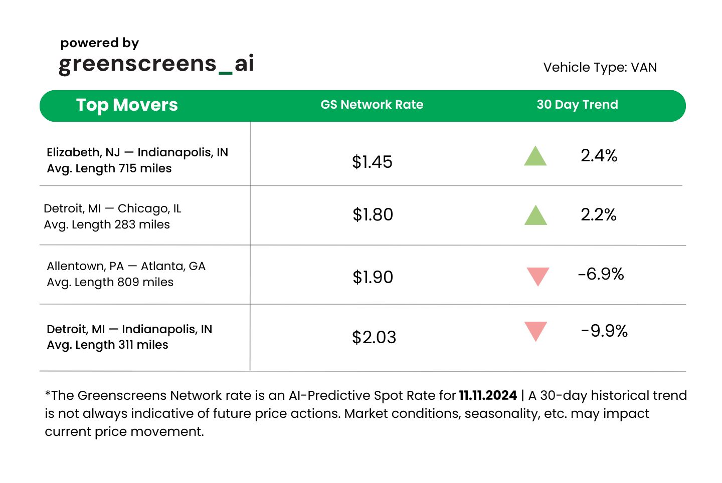 *Greenscreens.ai, forecasts real-time truckload buy prices that are suited to each freight brokerage's purchasing power using AI and machine learning. Its engine takes into account over 130 attributes and data points in each rate forecast.