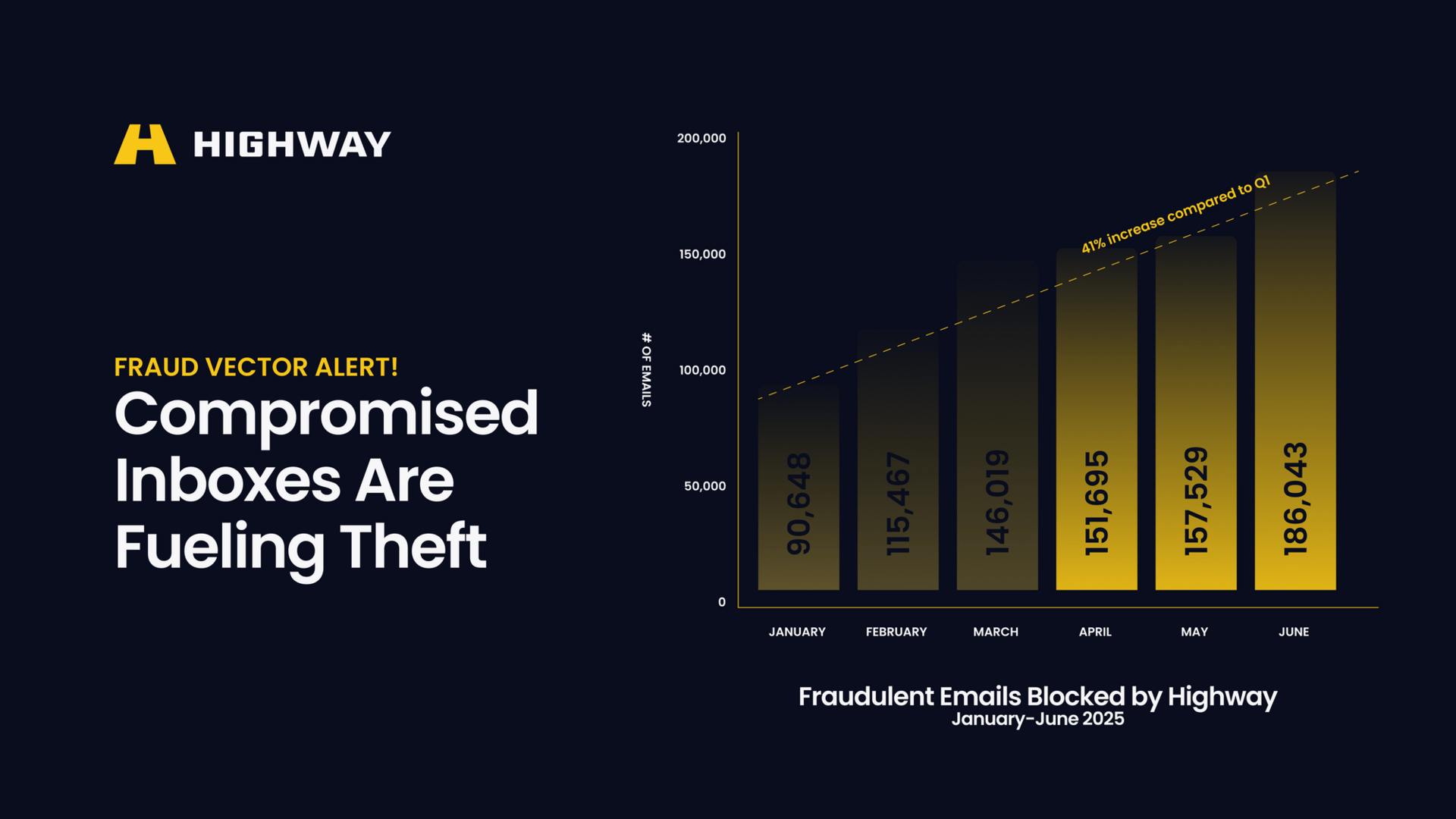 In Q2 alone, Highway blocked 495,267 fraudulent email attempts, a 41% spike from Q1. Fraudsters are hijacking legitimate inboxes, watching every move, and intercepting rate confirmations before loads ever hit the road.