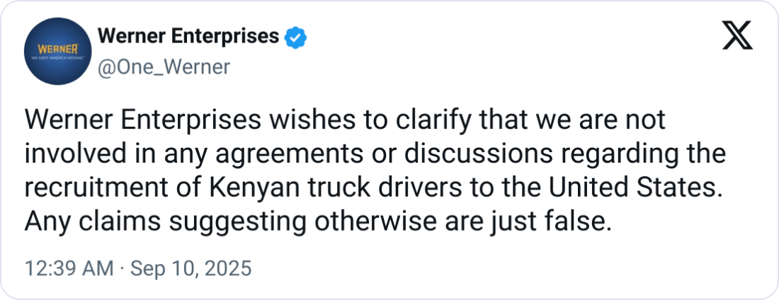 Werner Enterprises, based in Nebraska, publicly denied involvement, clarifying it had no part in the agreement.