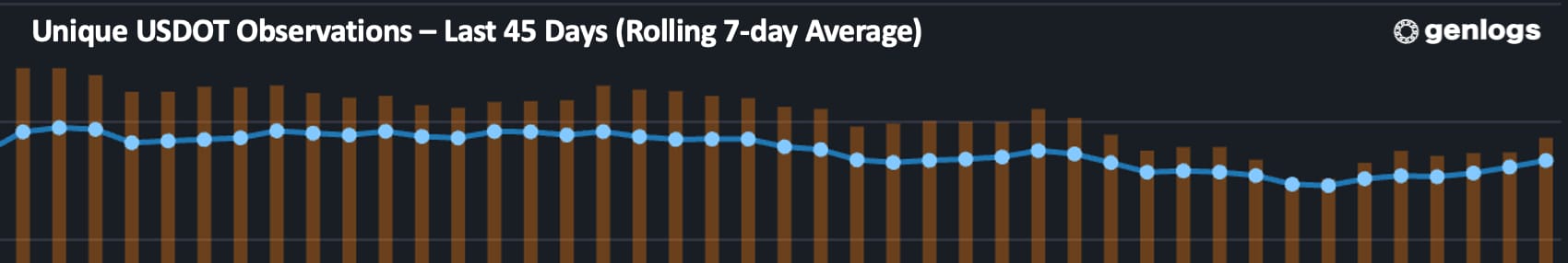 GenLogs CEO Ryan Joyce says his team has tracked a -6.7% drop in unique USDOTs and a -3% drop in unique trucks on U.S. roads since mid-September.