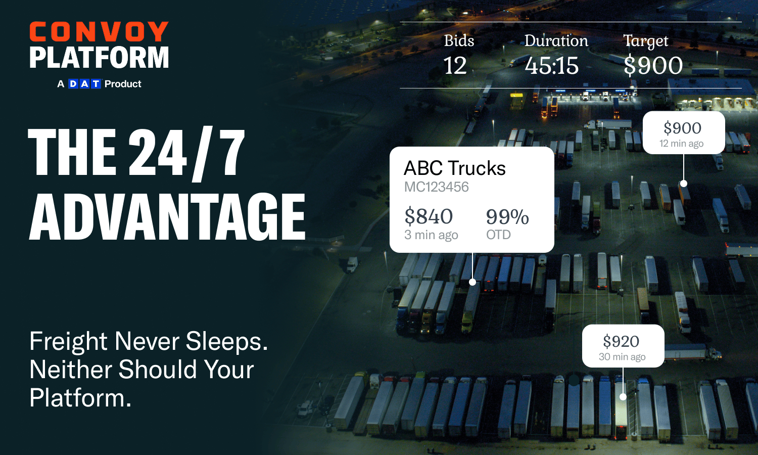 The Convoy Platform gives brokers advanced freight automationācovering vetting, booking, tracking, and paymentsāso you can hit your targets even while you sleep.