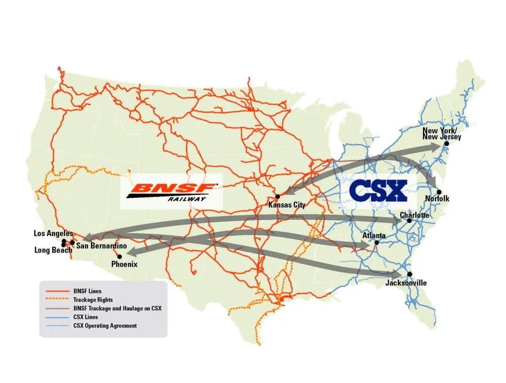 Even as investors press for change, CSX and BNSF have expanded cooperation. The railroads announced new joint intermodal services linking: