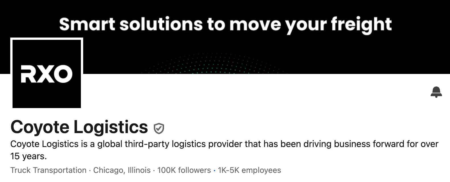 Coyote's LinkedIn page has been rebranded as RXO following the acquisition.