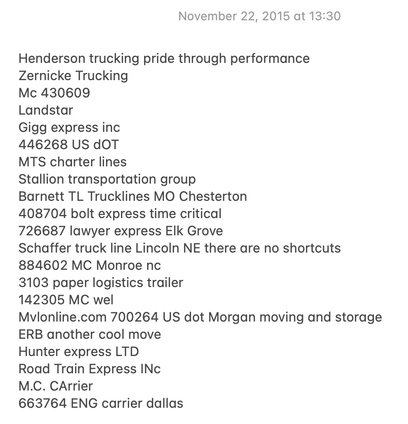 Building on the first tip—whenever I spoke to a carrier, I would always ask if I could add them to the daily load list email I sent out. Most carriers were happy to be added.