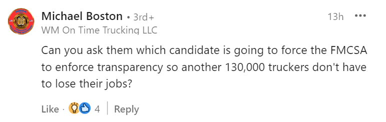 Industry personality Mutha Trucker News conducted a poll that revealed his trucker audience overwhelmingly believed Trump would be a more beneficial candidate.